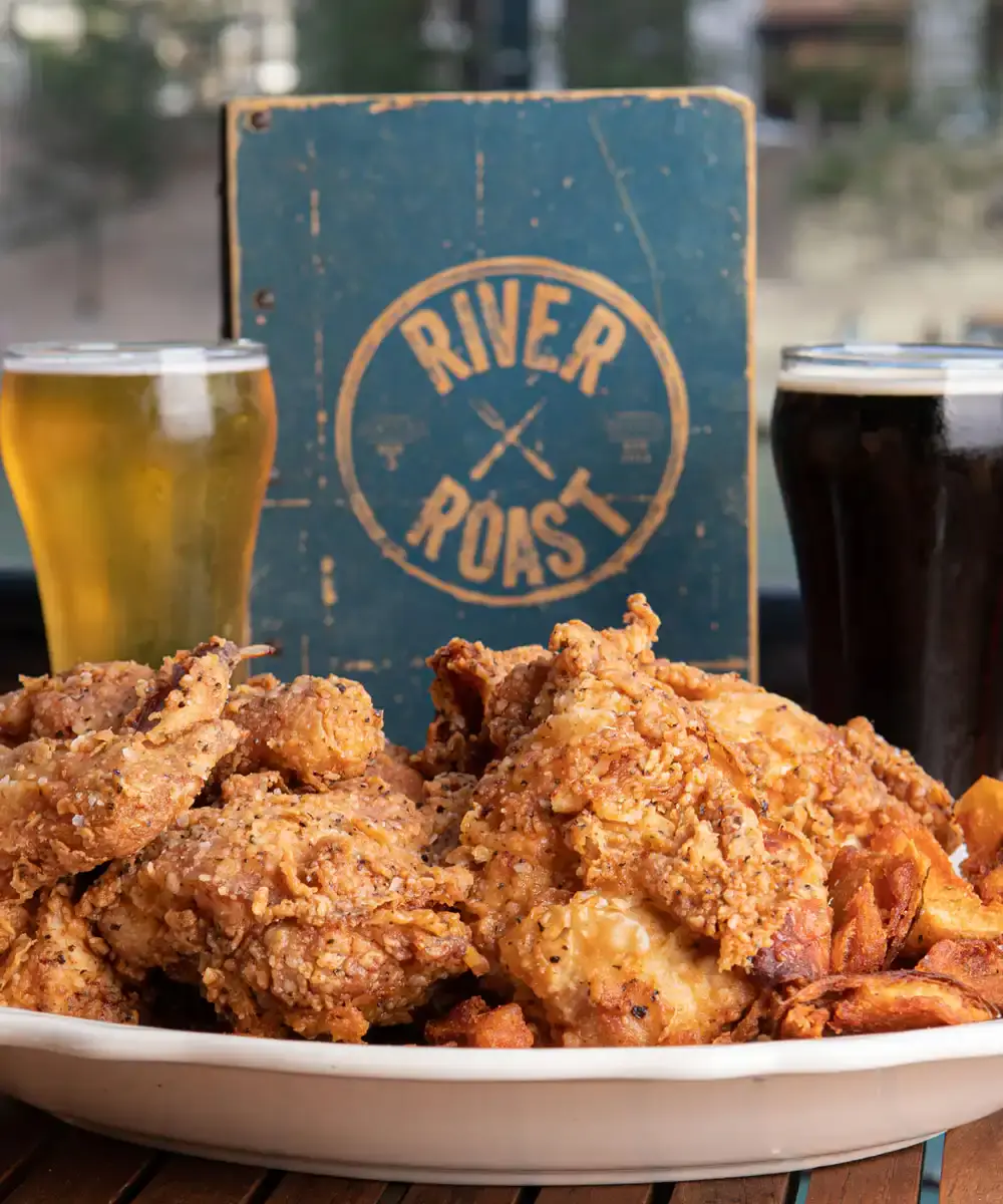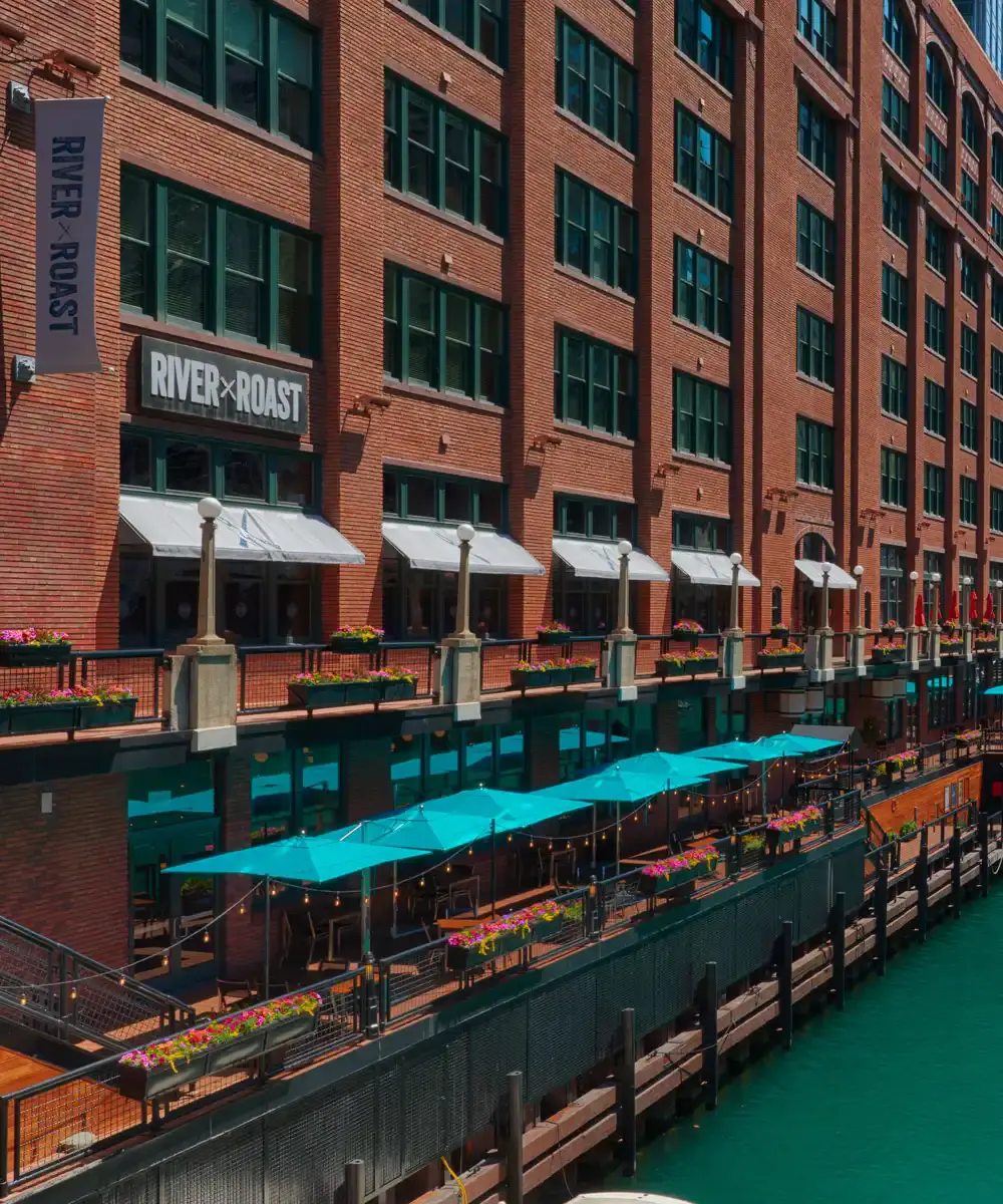 Situated on the iconic Chicago River with stunning views of downtown, River Roast is a lively social house and gathering place home to Corner Roast Coffee & Bar and RR Events. The menu features contemporary American tavern fare with dramatic presentations of whole roasted chicken, whole roasted fish, and slow roasted beef.